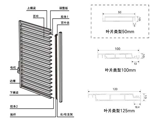 ,同時平板百葉葉片之間連接處有防水槽及防水膠條,葉片完全閉合時可防雨;
